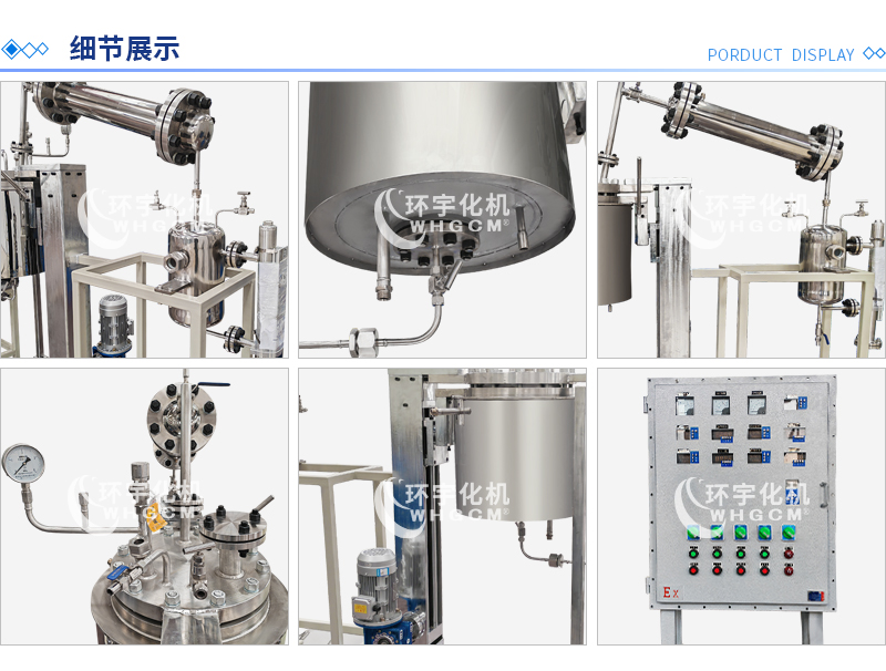 常規釜蓋開口 氣相口配針形閥,液相口配針形閥及釜內插底管,固體加料口配絲堵,測控溫口配鉑電阻,壓力表安全爆破口配壓力表及安全防爆裝置,釜內冷卻盤管進、出口配水咀