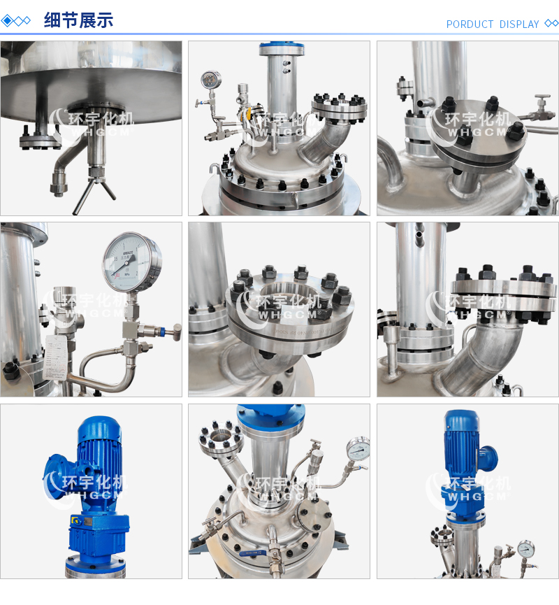 其他附件 如果用戶在釜蓋、釜體開口、內部結構、壓力高低、攪拌槳葉、及增加其他輔助裝置(如冷凝回流裝置、冷凝器、恒壓加料罐、接收裝置)等有特殊要求,可完全按用戶的要求加工制造