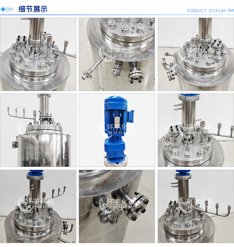 其他附件 如果用戶在釜蓋、釜體開口、內部結構、壓力高低、攪拌槳葉、及增加其他輔助裝置(如冷凝回流裝置、冷凝器、恒壓加料罐、接收裝置)等有特殊要求,可完全按用戶的要求加工制造
