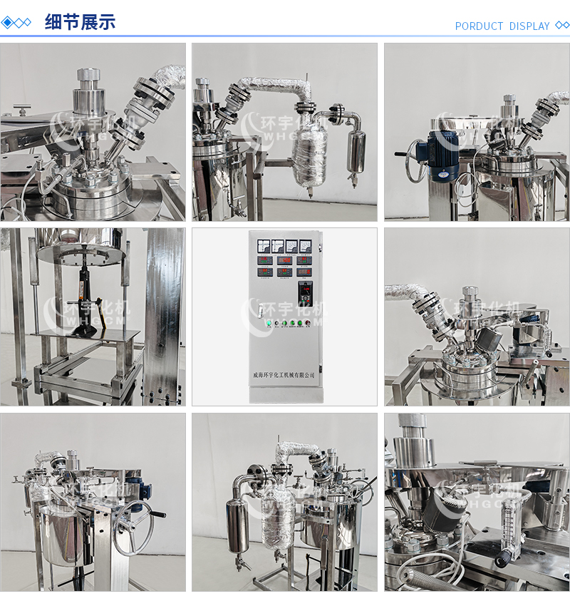 常規釜蓋開口 氣相口配針形閥,液相口配針形閥及釜內插底管,固體加料口配絲堵,測控溫口配鉑電阻,壓力表安全爆破口配壓力表及安全防爆裝置,釜內冷卻盤管進、出口配水咀