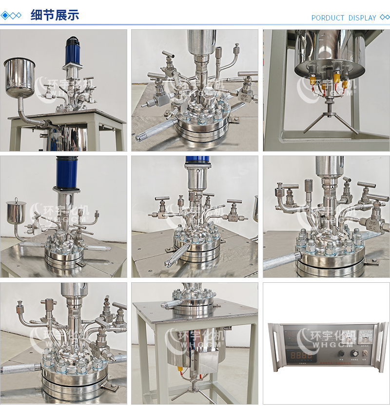 常規釜蓋開口 氣相口配針形閥,液相口配針形閥及釜內插底管,固體加料口配絲堵,測控溫口配鉑電阻,壓力表安全爆破口配壓力表及安全防爆裝置,釜內冷卻盤管進、出口配水咀