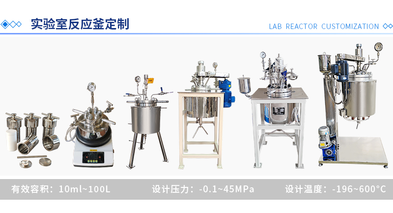 主要材料 釜體材料主要采用0Cr18Ni9(304)、00Cr17Ni14Mo2 (316L)、1Cr18Ni9Ti(321),并可根據不同介質要求制作鈦材(TA2)、鎳材、鉭材、鋯材、哈氏合金、反應釜內噴四氟及襯鎳(Ni6)