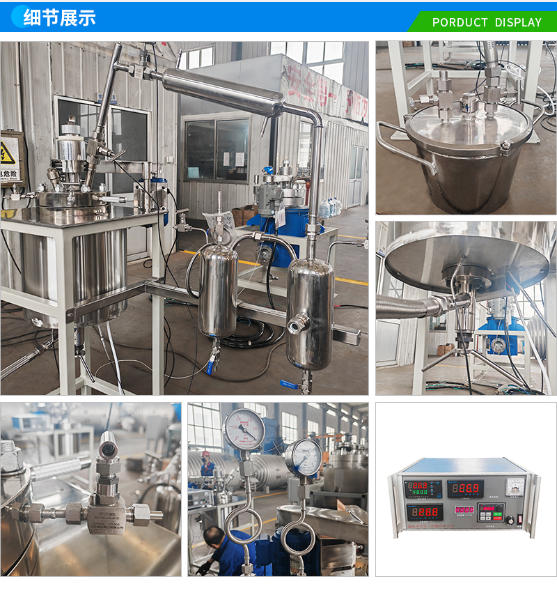 常規釜蓋開口 氣相口配針形閥,液相口配針形閥及釜內插底管,固體加料口配絲堵,測控溫口配鉑電阻,壓力表安全爆破口配壓力表及安全防爆裝置,釜內冷卻盤管進、出口配水咀